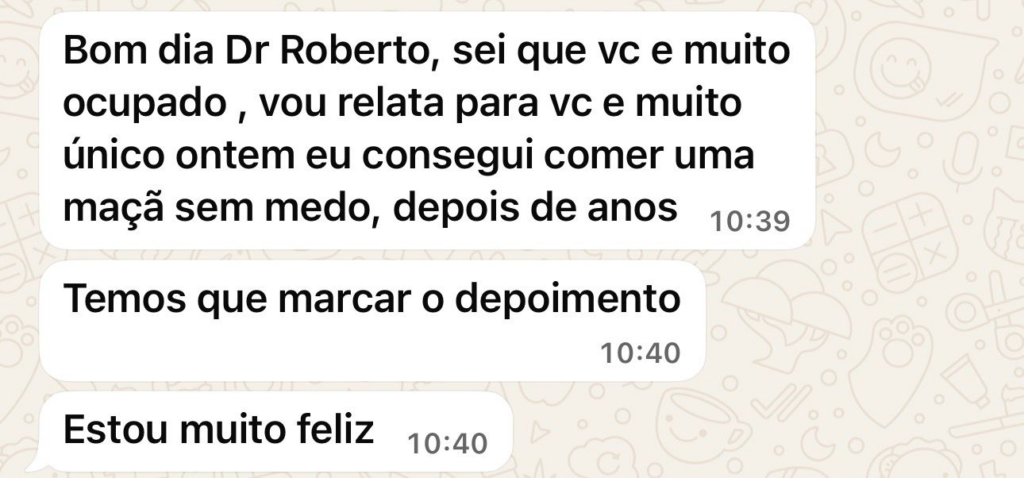 Você verá aqui algumas mensagens que o Wemerson enviou para Dr. Roberto depois do tratamento e o vídeo do seu depoimento.