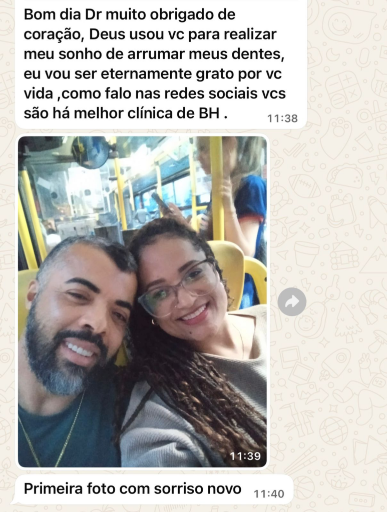 Quando o tratamento começou, ele teve dentes fixos em poucos dias e, com isso, experimentou não só uma mudança física, mas uma verdadeira transformação emocional.